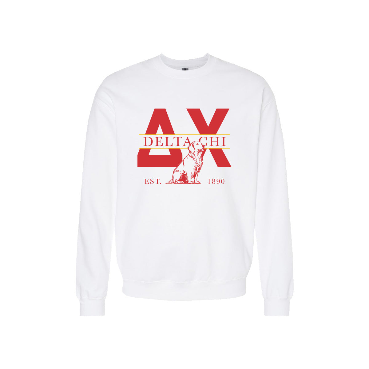 Show your Delta Chi pride with this comfortable crewneck featuring your favorite golden retriever! This high-quality crewneck is perfect for repping your fraternity. Whether headed to class or meeting friends, this classic Delta Chi crewneck design will keep you cozy in style.
