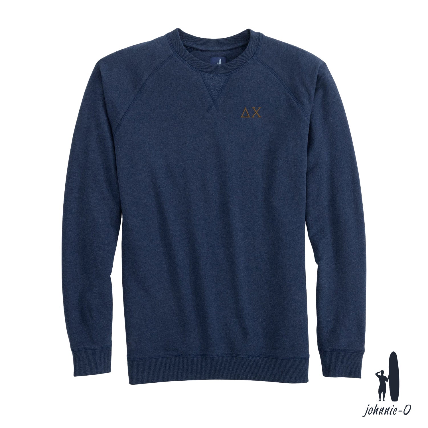 Elevate your fraternity wear with the Delta Chi Freeman Crewneck by Johnnie-O. This premium navy sweatshirt features subtle Delta Chi Greek letters embroidered in brown, offering a refined way to display your brotherhood. Made with Johnnie-O's signature attention to quality and comfort, the Freeman Crewneck combines classic collegiate style with modern sophistication.