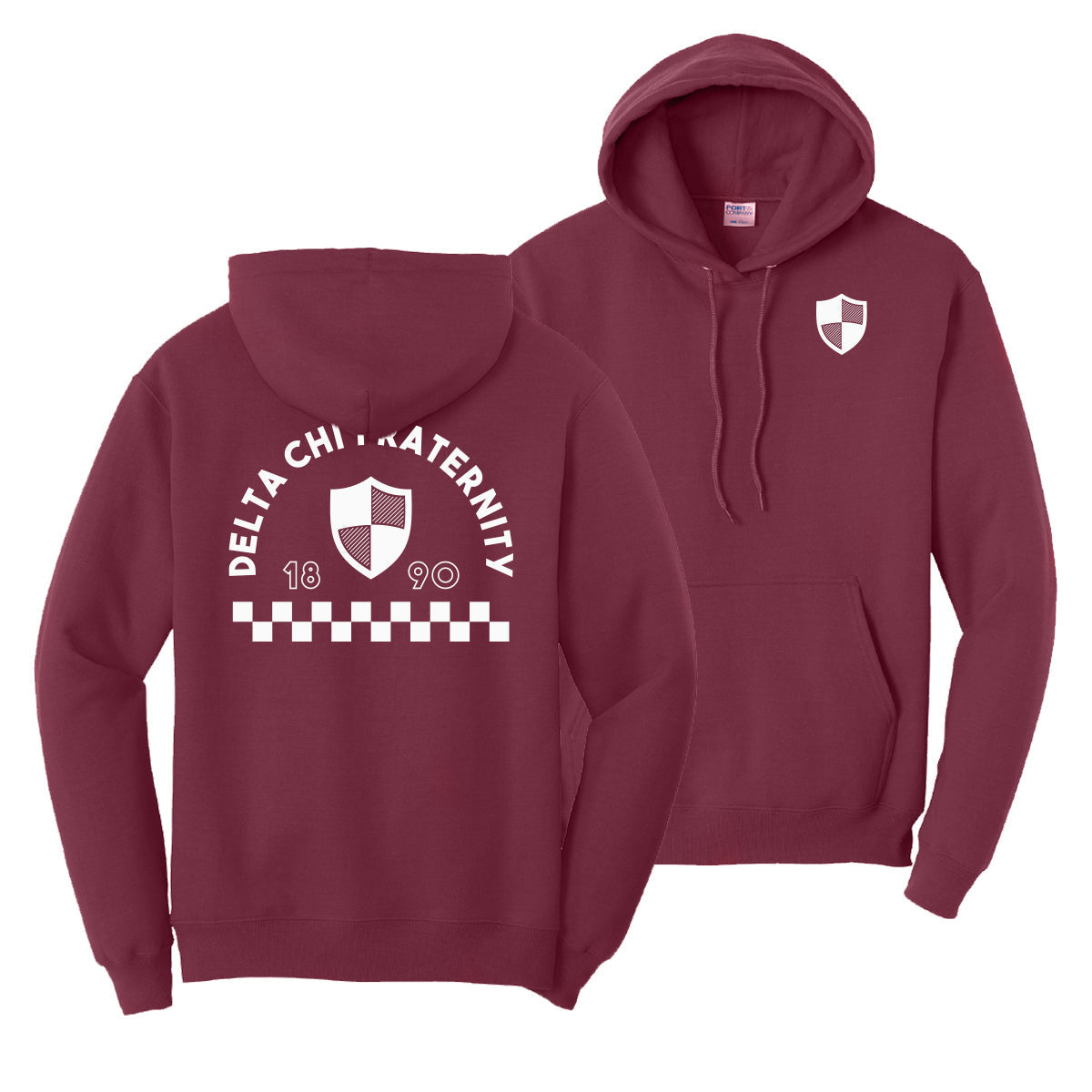 Look stylish while representing your Delta Chi fraternity with this retro-inspired graphic hoodie. This midweight sweatshirt has a bold design on the back that features the Delta Chi symbol.